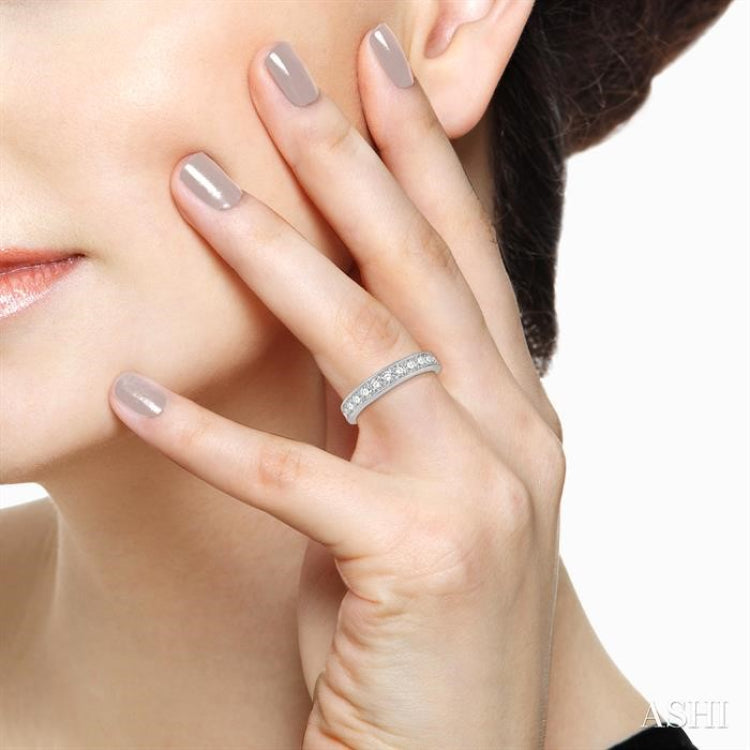 3/4 Ctw Round Cut Diamond Wedding Band in 14K White Gold