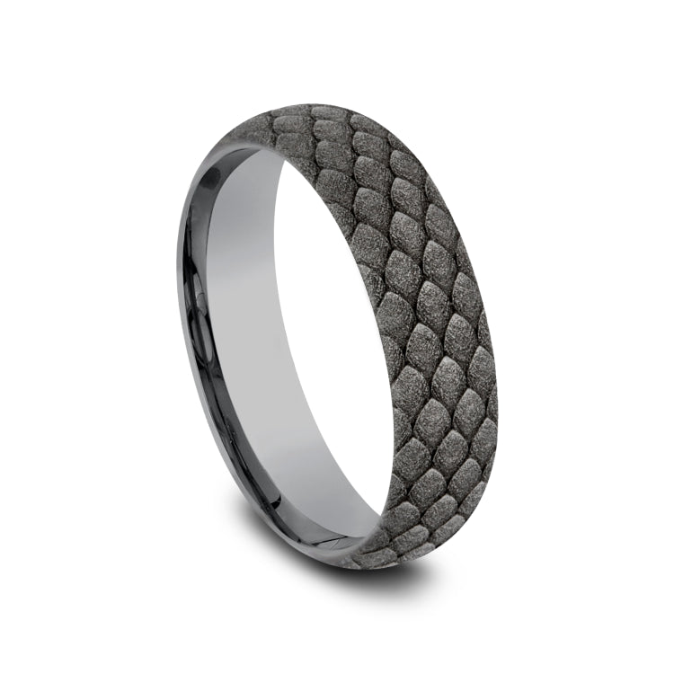 6mm, Comfort fitGrey TantalumDragon scale pattern
