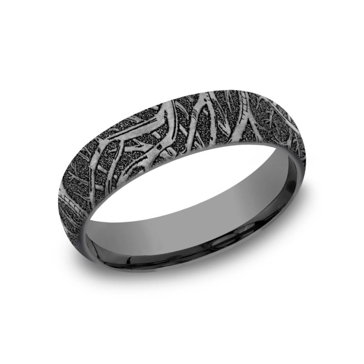 6mm, Comfort fitDarkened TantalumForest branch pattern