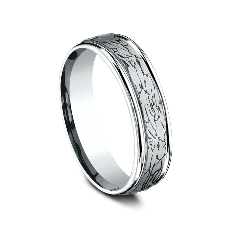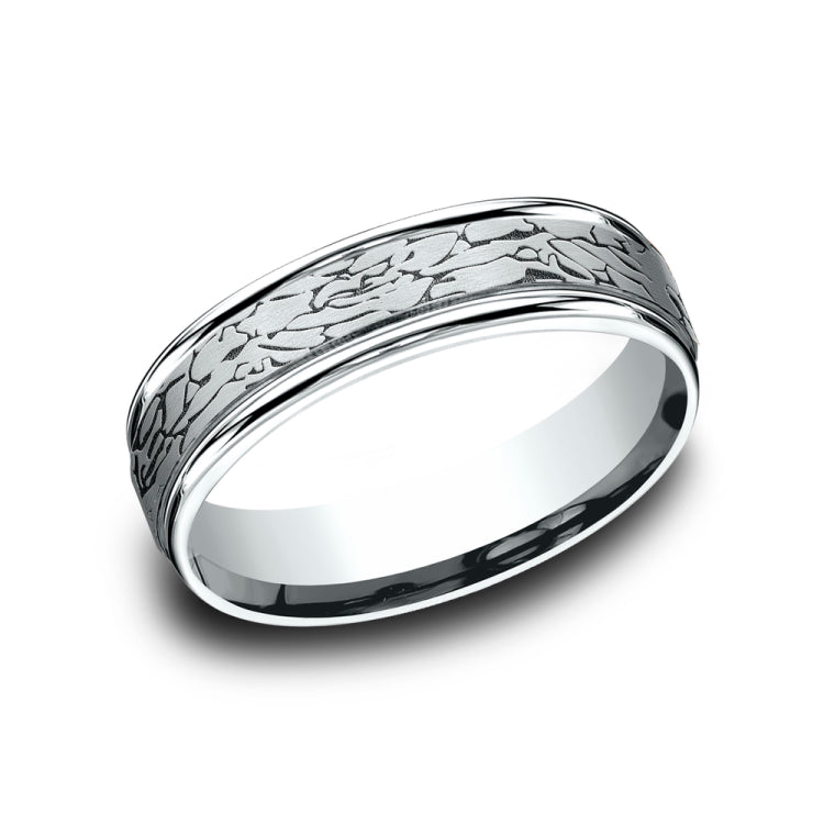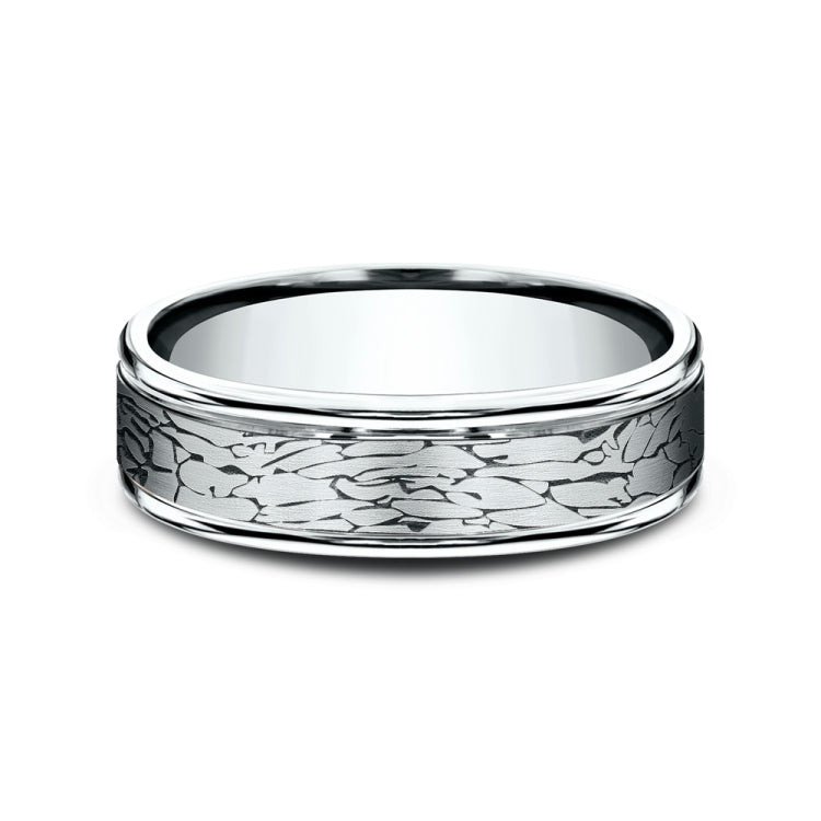 6mm, Comfort fit14K White GoldFractured rock pattern, polished round edges
