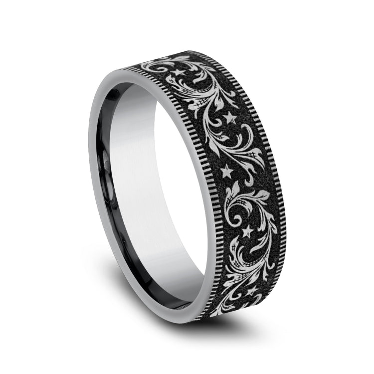 7mm, Comfort fitTungstenBarrel script pattern, thin edges
